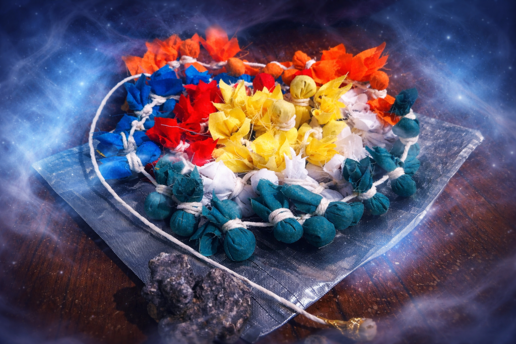 4. The Prayers: “Prayer’s tie” those are handcrafted prayers made with different fabric colors in which there is tobacco, copal and herbs. Each prayer carries your intention while working within the Moon Dance Circle (We need to craft 52 prayers, 13 for each color: Yellow, Red, Blue and White) (You can get more details ones you register).